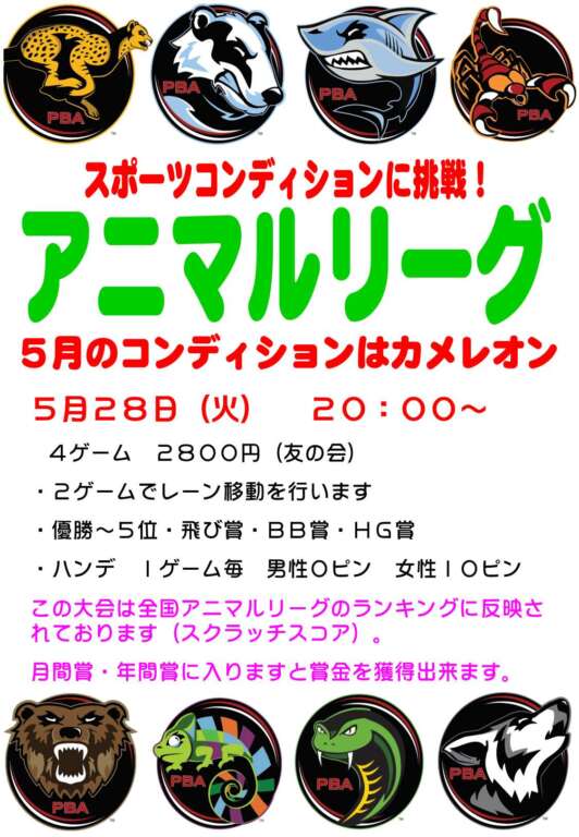 2024年4月22日 5月のセンターニュースをアップしました。 1日(水) 20:00~ 河上未希プロとボウリング 3日(金) 20:00~ 山谷新也プロとボウリング 6日(月) 9:30~ 大関隆之プロとボウリング11日(土) 9:30~ ドリンクゲットトーナメント11日(土) 20:00~ 藤井信人プロチャレンジマッチ14日(火) 20:00~ アニマル研究会18日(土) 10:00~ 健康ボウリング大会19日(日) 19:00~ 三上彩奈プロとボウリング26日(日) 19:00~ 山谷新也プロとボウリング28日(火) 20:00~ アニマルリーグ センターニュースはこちらから