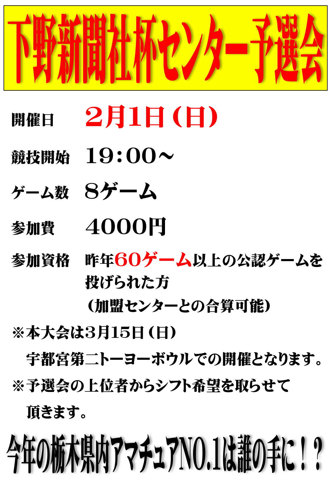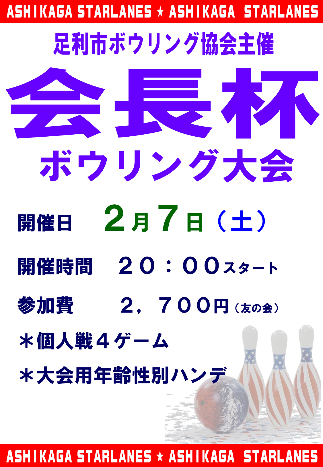 2026年1月25日 2月のセンターニュースをアップしました。 1日(日) 19:00~ 下野新聞社杯センター予選会 4日(水) 20:00~ 河上未希プロとボウリング 7日(土) 20:00~ 会長杯ボウリング大会 8日(日) 19:00~ 三上彩奈プロとボウリング11日(水) 13:00~ 山谷新也プロとボウリング13日(金) 10:30~ 鈴木一彌プロとボウリング15日(日) 19:00~ 浅田梨奈プロとボウリング23日(月) 10:00~ 足利桐生親睦ボウリング大会23日(月) 19:00~ 山谷新也プロとボウリング27日(金) 10:30~ 健康ボウリング大会センターニュースはこちらから