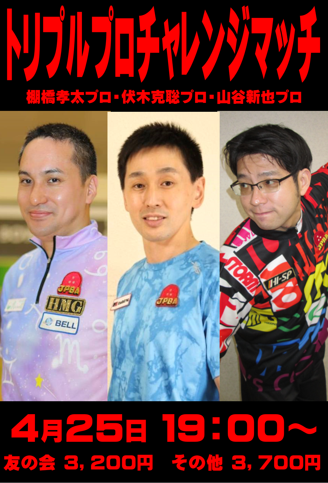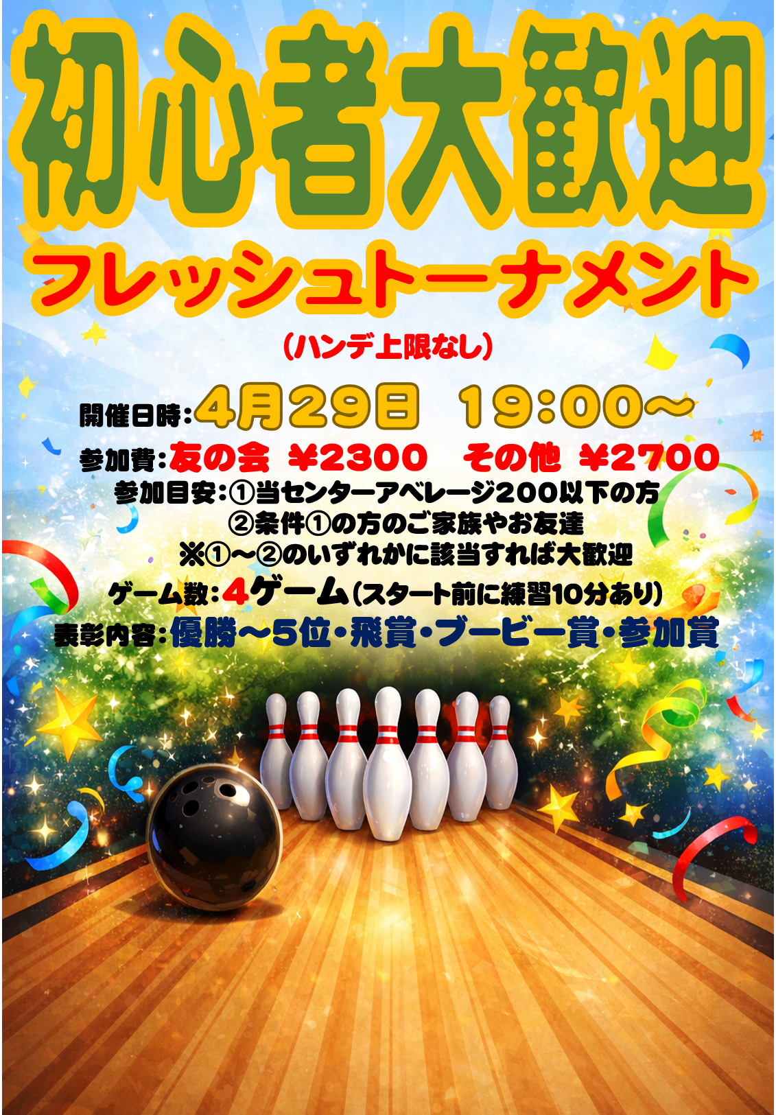 2026年3月26日 4月のセンターニュースをアップしました。 1日(水) 20:00~ 河上未希プロとボウリング10日(金) 10:30~ 鈴木一彌プロとボウリング12日(日) 19:00~ パーフェクト記念大会17日(金) 10:30~ 藤井信人プロとボウリング19日(日) 19:00~ 西山翔悟プロとボウリング25日(土) 19:00~ トリプルプロチャレンジマッチ (棚橋孝太プロ・伏木克聡プロ・山谷新也プロ)29日(水) 10:00~ 健康ボウリング大会29日(水) 19:00~ フレッシュトーナメントセンターニュースはこちらから