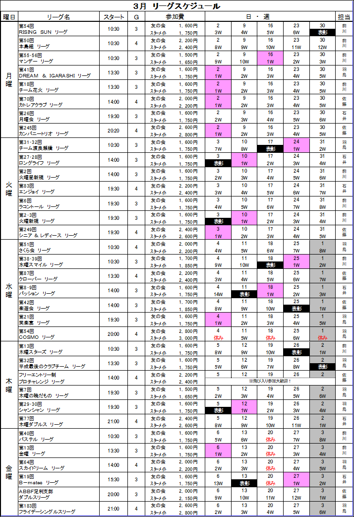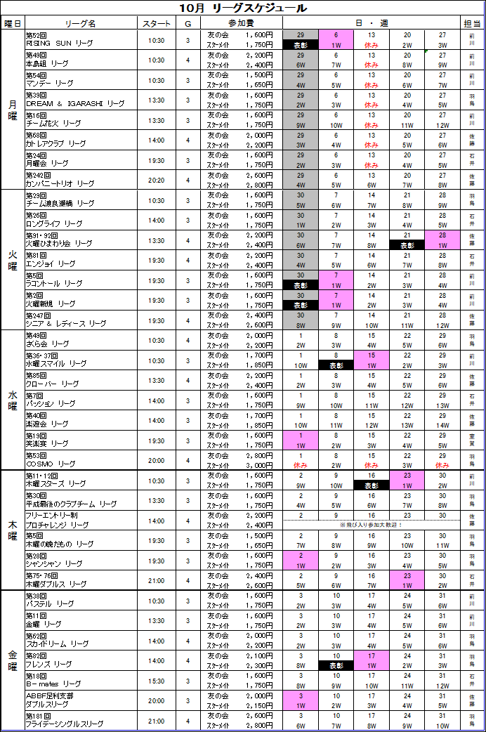 ピンクの所がリーグ戦の新クールスタート日となります。