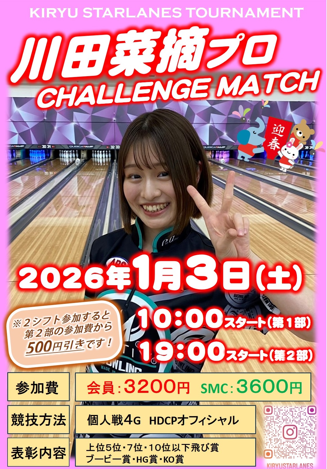 2025年12月21日 センターニュース1月号を更新いたしました♪( リーグ ・ トーナメント ・ レッスン )1日は支配人、2日は遠藤誠プロ、三上彩奈プロ、3日は川田菜摘プロ、18日は中島美穂プロのチャレンジがございます!1月1日(木)14時 金嶋支配人チャレンジ1月2日(金)10時 遠藤誠プロチャレンジ1月2日(金)19時 三上彩奈プロチャレンジ1月3日(土)10時と19時 川田菜摘プロチャレンジ①②1月4日(日)19時 大橋スタッフチャレンジ1月11日(日)14時 年間表彰大会1月12日(月祝)14時 中沢奨プロチャレンジ1月18日(日)19時 中島美穂プロチャレンジ1月20日(火)19時30分 岩本係員と投げよう1月24日(土)19時 坪井スタッフ卒業大会1月25日(日)19時 お客様にチャレンジ1月31日(土)19時 中沢奨プロチャレンジ来年もどうぞよろしくお願いいたします<(_ _)>皆様のご参加お待ちしております♪