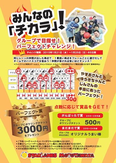 パーフェクトを達成されたグループには3,000円分のボウリングチケットをプレゼントしちゃいます!皆さんで分けあって、遊んでくださいね♪ 250~299点の惜しかったグループには500円分のボウリングチケットを、200~249点のグループにはボウリング場限定オリジナルうまい棒を全員にプレゼントします(´・ω・`)