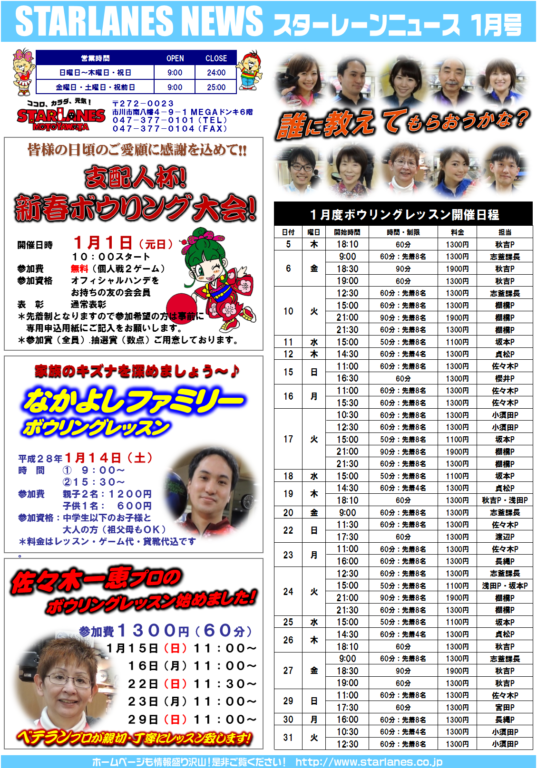 1月の大会スケジュール・レッスンスケジュールが掲載されているセンターニュースをアップしましたので、是非ともご覧ください。