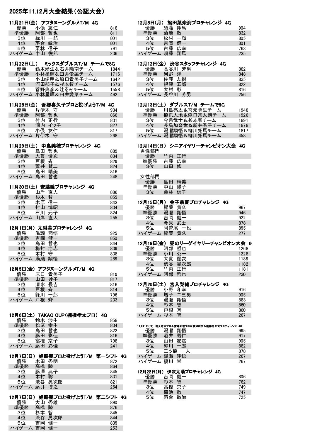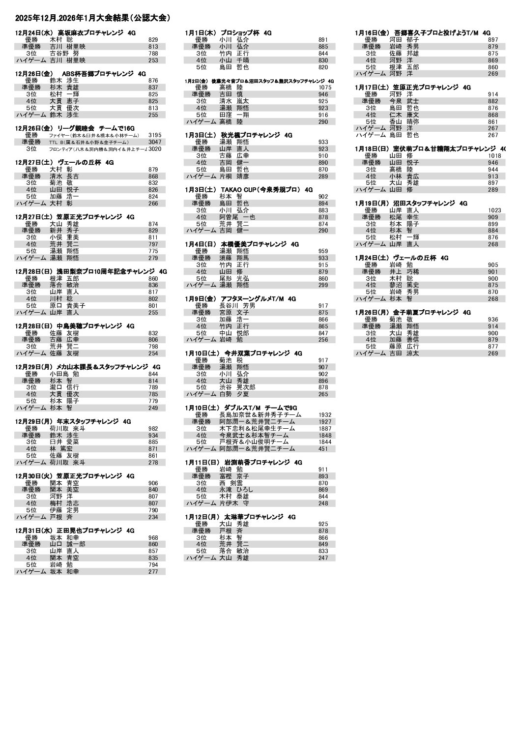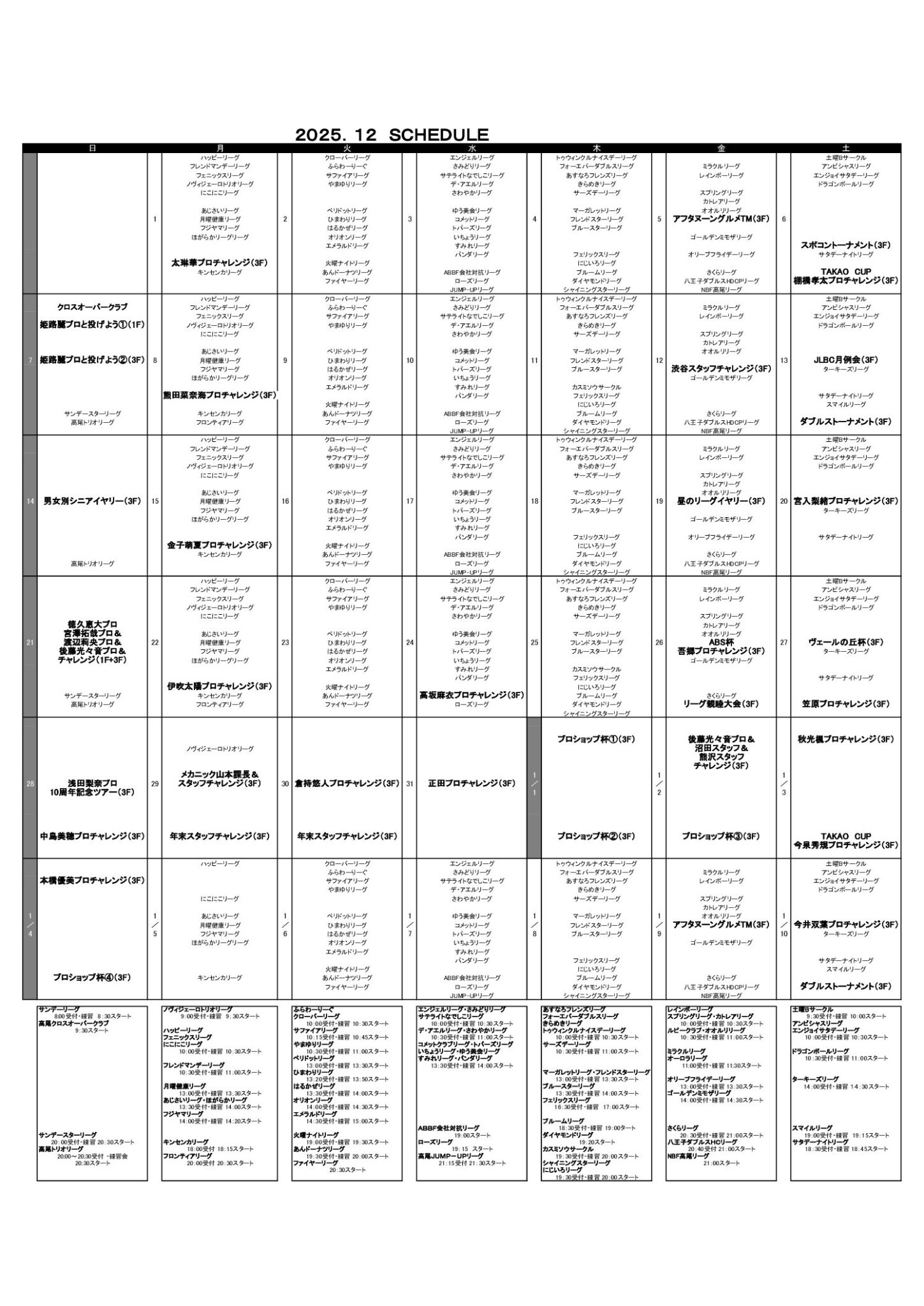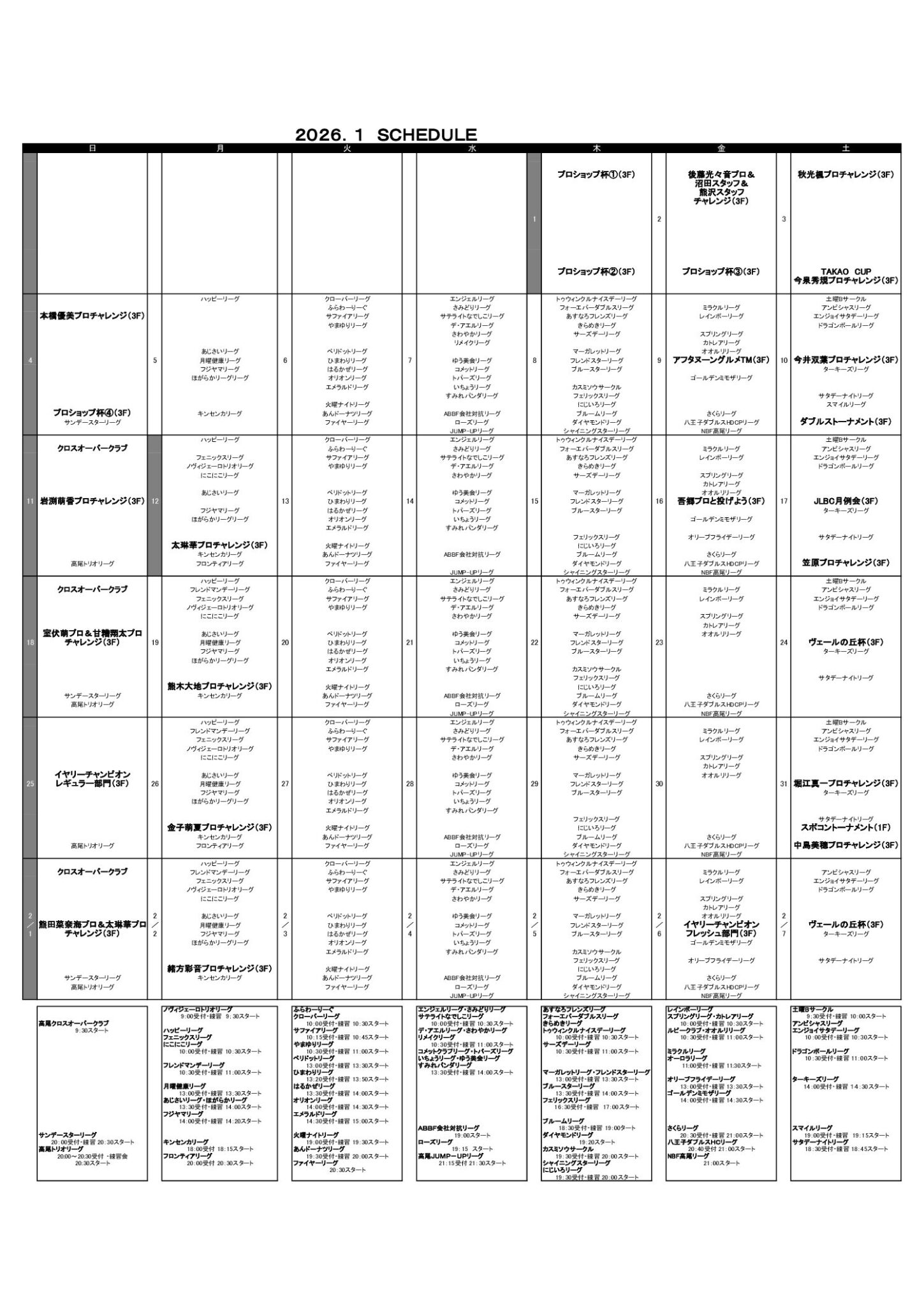 プロレッスン&プロ予定表