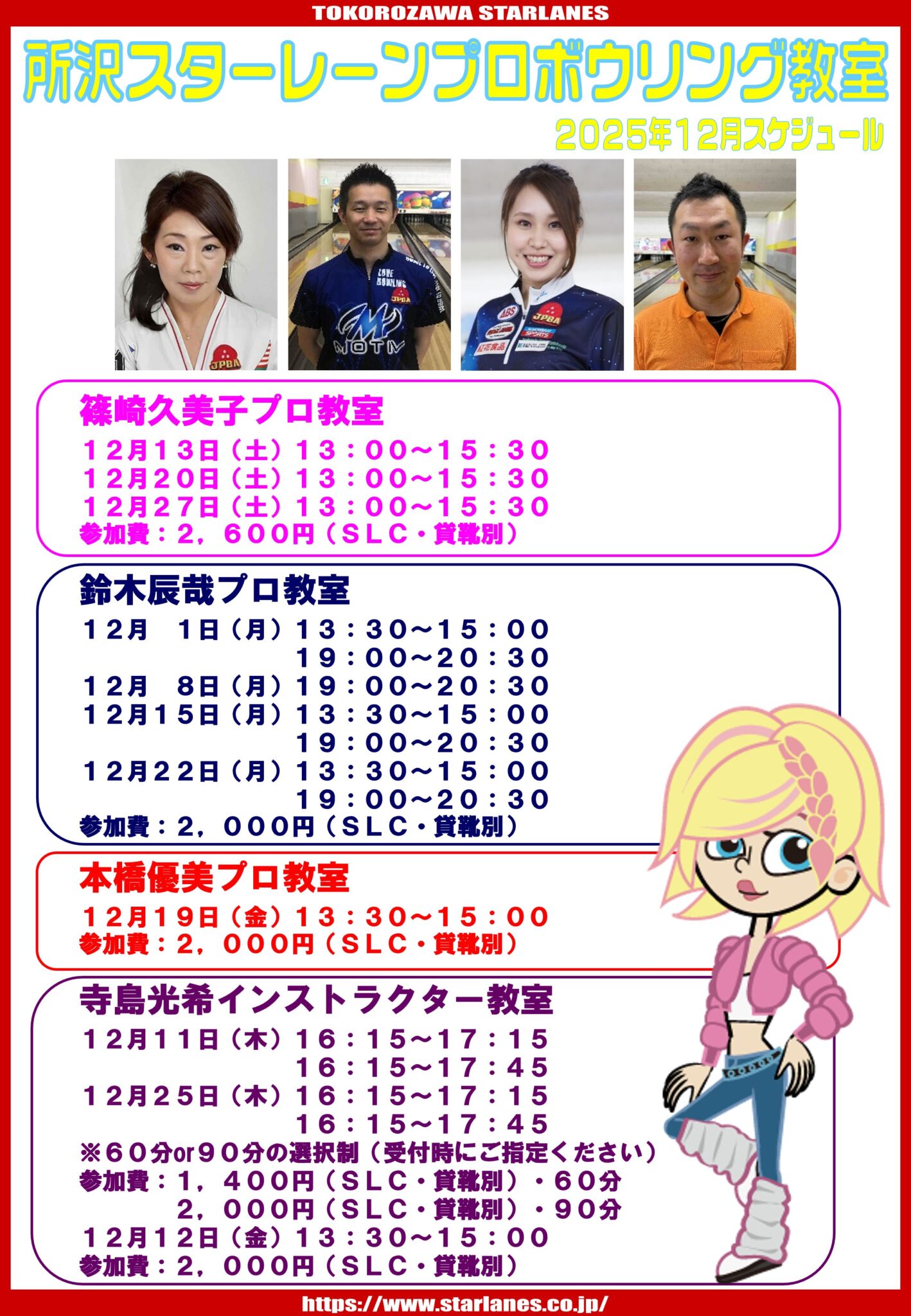 2025年11月27日 センター所属プロボウラーを中心に行われる2025年12月のボウリング教室のスケジュールを更新しました。初級者から上級者までプロボウラーに教わる大チャンスです。みなさまのご参加お待ちいたしております。 詳しくはクリック ⇒ 【2025年12月教室スケジュール】